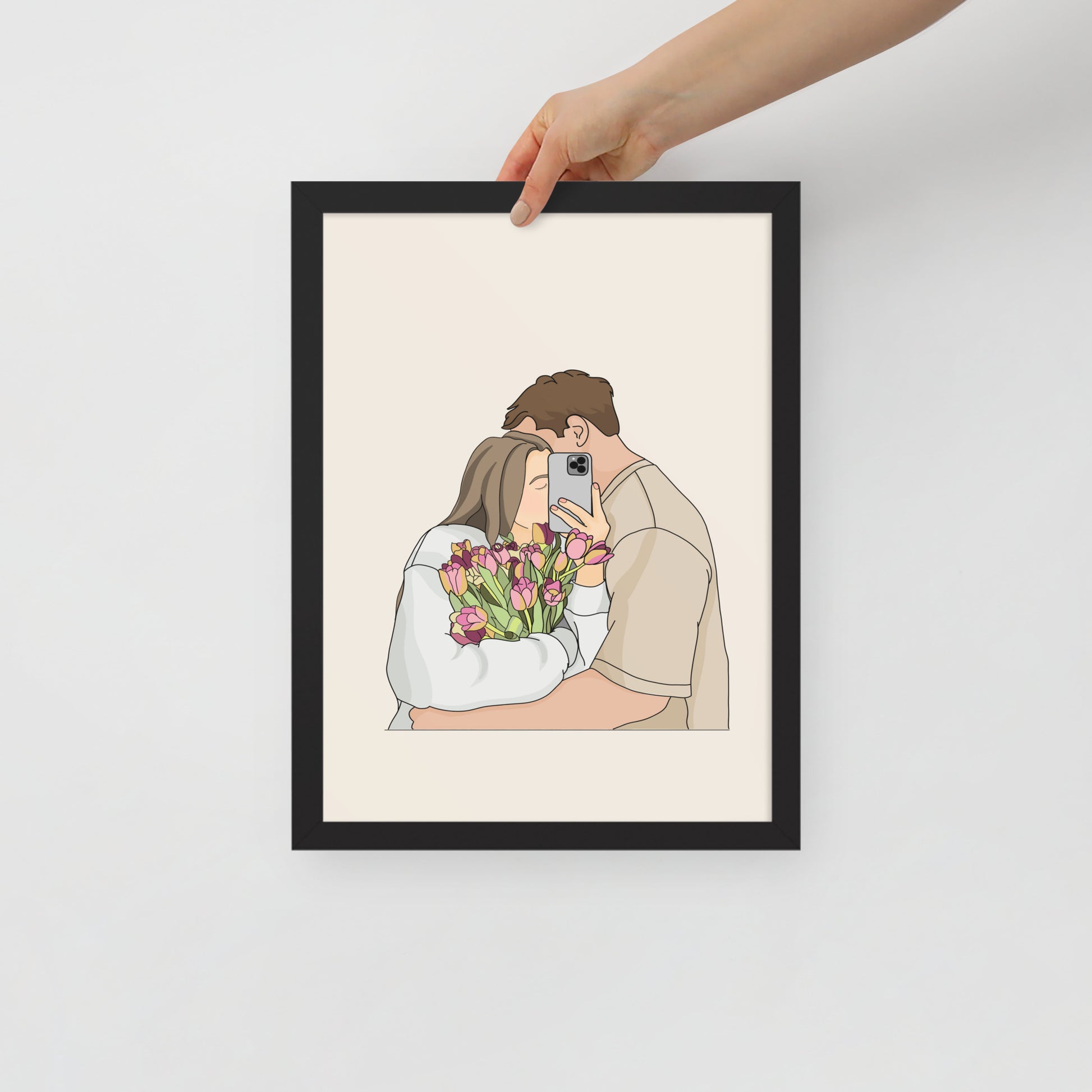 “A Moment of Us” captures a quiet moment shared between two people — a gentle embrace, flowers in hand, and the simple happiness of being together.